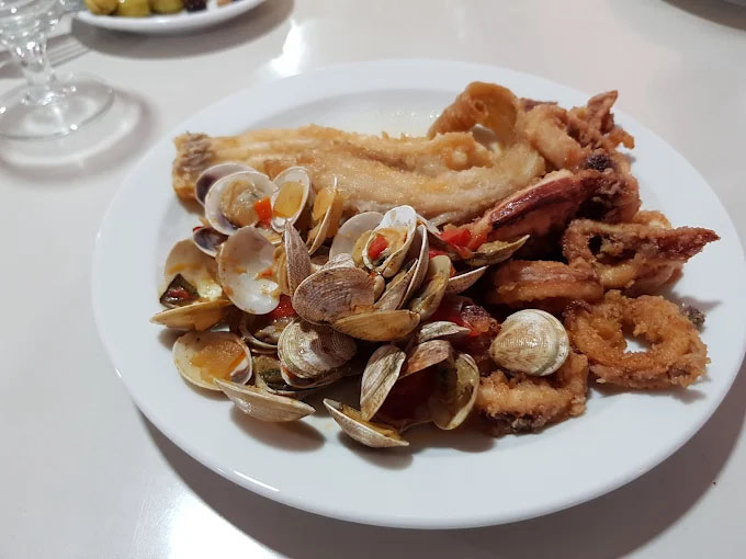 Puedes tomar el almuerzo Especial plato grande con 3 variedades de tapas, brasa o bocadillo. Además, incluye ajoaceite y olivas.